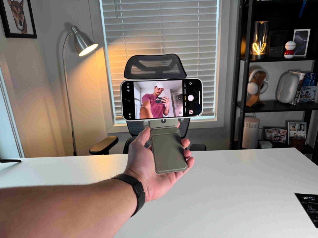 The tripod isn’t just a gimmick either—it offers multiple angles, making it perfect for content creators or anyone who needs a stable shot while on the move. It’s not going to replace a professional tripod for heavy-duty photography or filming, but for things like Zoom calls, watching videos, or even some POV shots it will handle great.