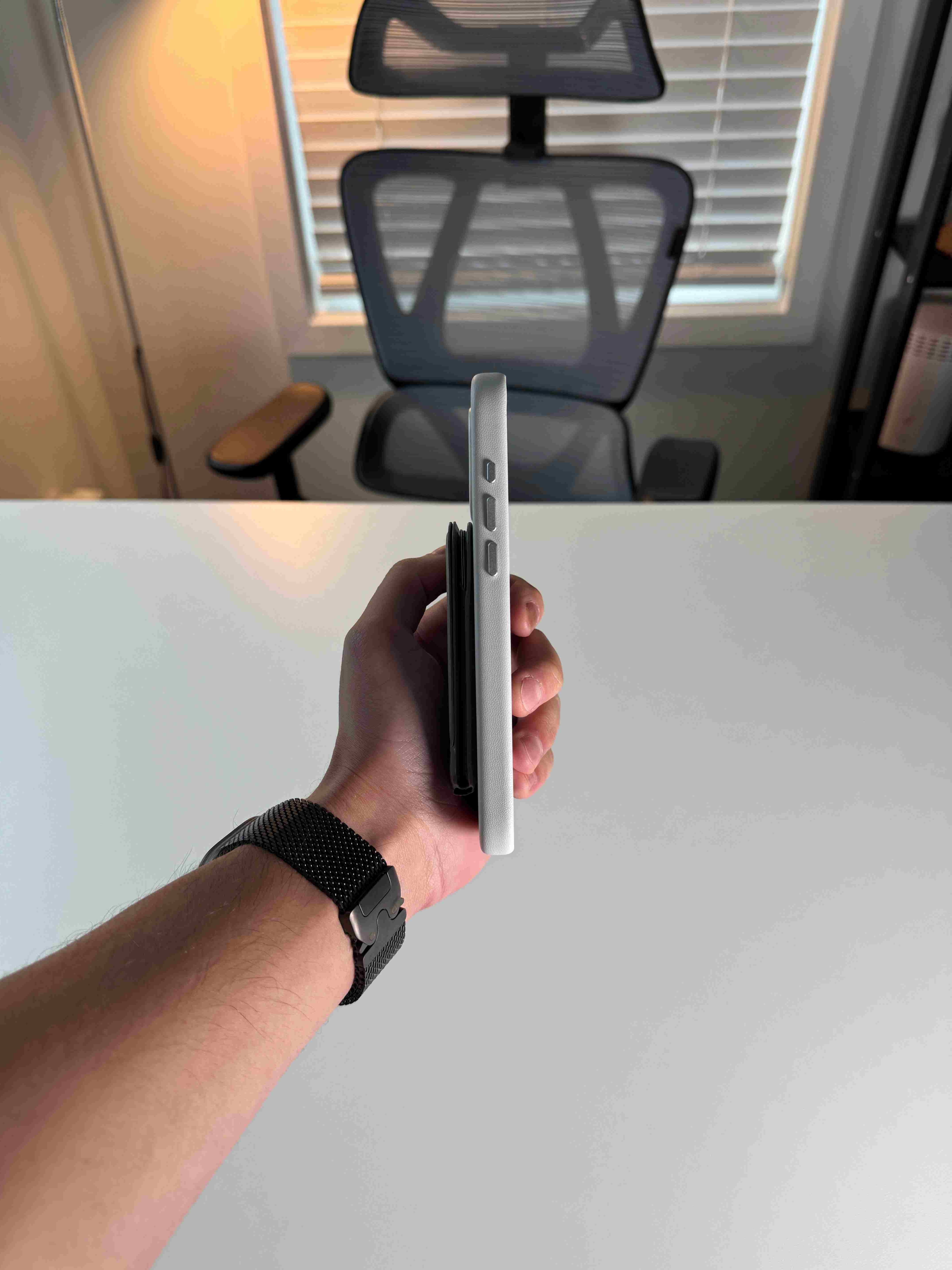 One of the coolest things about this wallet is the built-in tripod. It lets you go hands-free in both portrait and landscape mode, which is great for video calls, watching content, viewing ingredients while cooking, or even taking quick photos. The magnetic fold-out design is really easy to use and snaps into place fast, so you’re ready to go in seconds. You would think that with such a slim product, it could be flimsy. This is not the case for this accessory. Its extremely rigid when needed and gives me a strong sense of confidence that it holds up even that larger 16 Pro Max with ease.