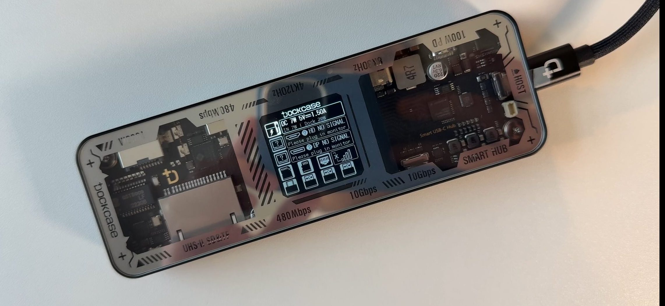The Dockcase Explorer is one of the best if you need a versatile USB-C hub. This 10-in-1 hub supports power delivery up to 100W and includes HDMI, DisplayPort, USB-A, Ethernet, and SD card slots, making it a one-stop solution for connectivity. It also features a small display that shows real-time diagnostics of your connected devices. Priced around $130, this hub combines functionality and style with its transparent design and durable build.