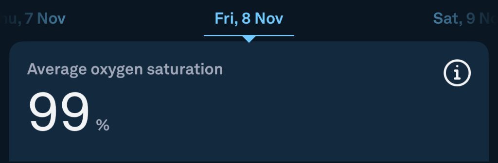 Additionally, my O2 sats were worrying low at one point while I was in hospital, but I was able to open the app to check previous readings, providing both me and the doctor with reassurance that this was a transient issue and that my normal levels are high.