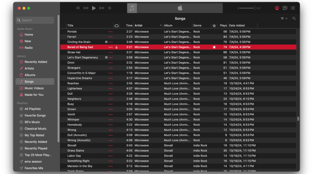 When “Bored of Being Sad” played, I remember letting it play out before going back to the beginning of the track and listening more closely. According to the Music app on the Mac, I added the rest of the album an hour later, and the play counts are respectable.