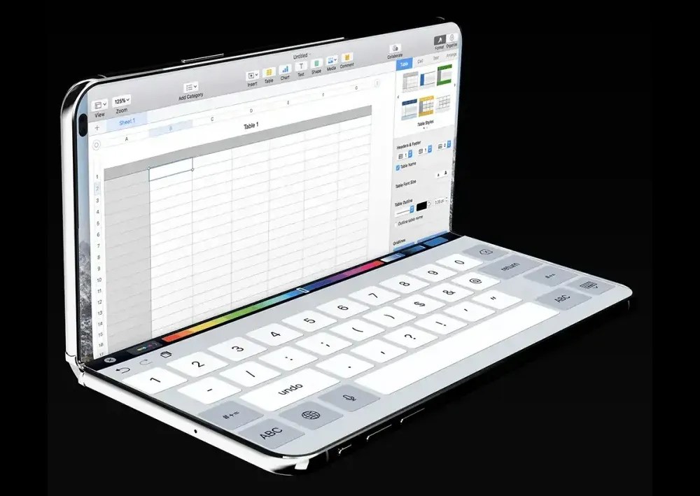 Another possible way to use this design is a laptop-style clamshell, as imagined here by designer Antonio De Rosa: