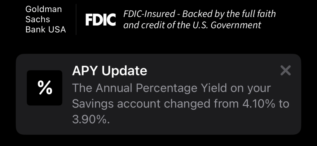 Apple and Goldman Sachs have announced another rate cut for Apple Card Savings Account. Starting today, Apple Card Savings Account offers a 3.90% annual percentage yield, down from 4.10%.