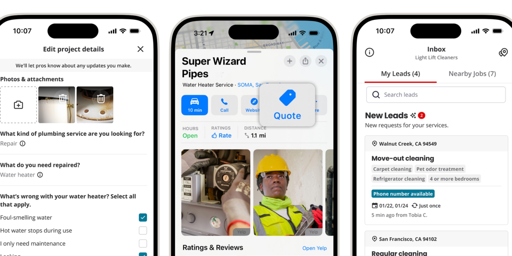 To make it even easier to connect with pros, no matter where you’re searching from, our Request a Quote feature is now integrated into Apple Maps. You can effortlessly request quotes from pros across more than 200 home, local, auto, professional, and events categories by clicking the “Quote” button on Apple Maps business pages, which brings you directly into the Request a Quote flow for that business in the iOS Yelp app. For those without the Yelp app installed, the feature directs you to the Request a Quote mobile web experience, ensuring a seamless connection with local pros. This integration brings even more high-intent leads to businesses from people starting their search off Yelp.