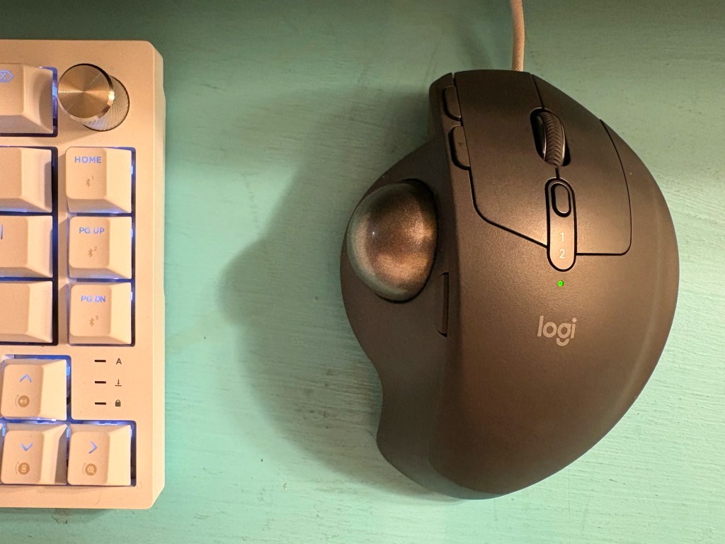 I also decided to take the Logi MX Ergo S for a spin today to see if it felt any better. My wrist and hand were immediately grateful. While everyone I know asks me if my ball mouse is from the 90s (no, but my nerves and bones are), I’m just relieved at how delightful it feels in the hand to control my cursor while the flare up is at its peak.