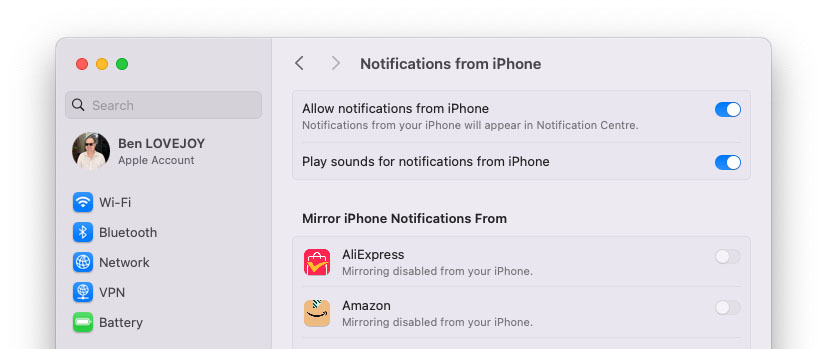 This allows iPhone notifications to be disabled altogether, or the duplicate ones toggled off. So the improvement I’d request here is automatically working out which ones are duplicated, and just removing those.