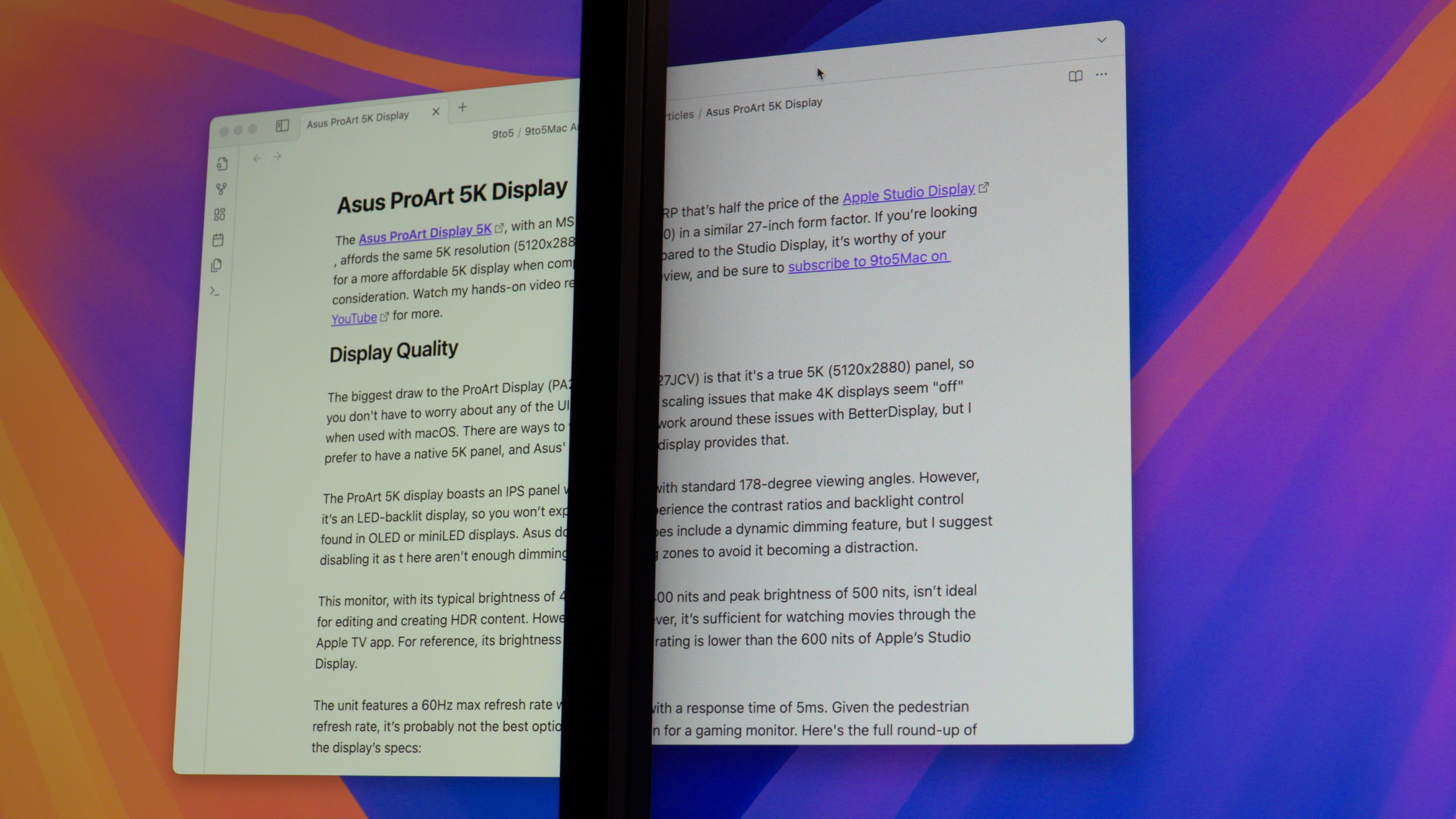 Is the Apple Studio Display much better than the ASUS ProArt Display 5K? When it comes to build quality, yes, without a doubt. But it gets more interesting if you’re only singling out the panels. If matte displays are not to your liking, and you prefer a glossy screen with text that pops, then the Studio Display might be the better choice. But if you’re okay with a matte display, the two are much closer than their respective prices may indicate.