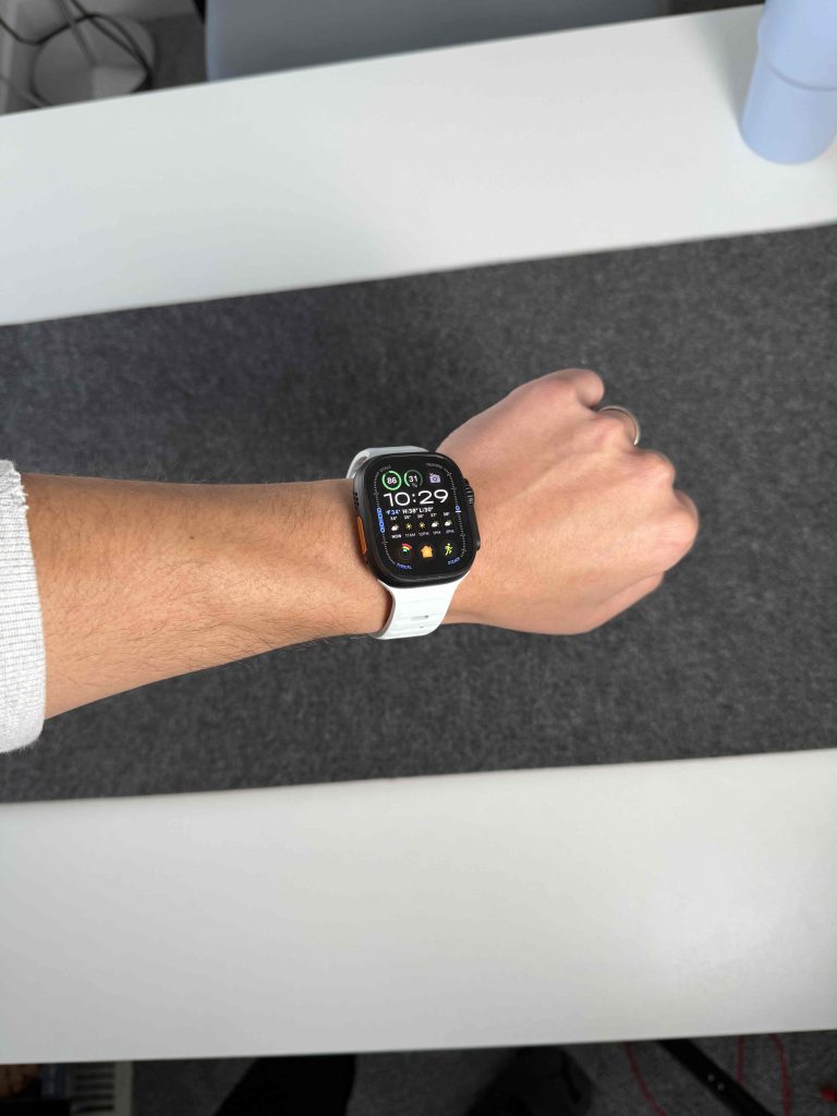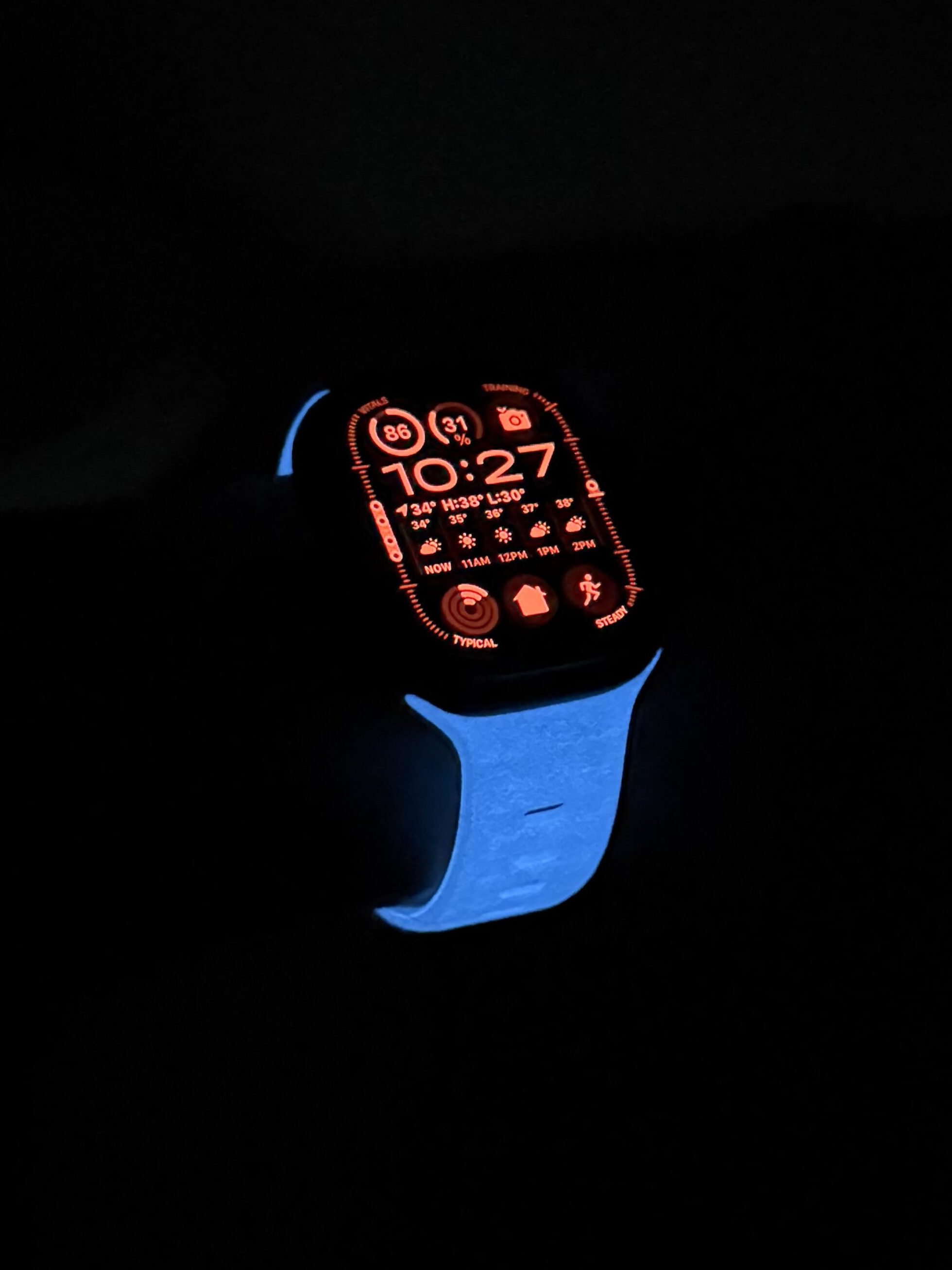 I’ve been using Nomad bands for a while now, and this new Glow in the Dark Icy Blue Sport Band might just be my favorite. First off, it looks incredible paired with my black titanium Apple Watch Ultra. The pale blue color during the day is clean and understated, but the real magic happens when the lights go out. The glow is intense, making it a standout accessory for evening runs or low-light environments.
