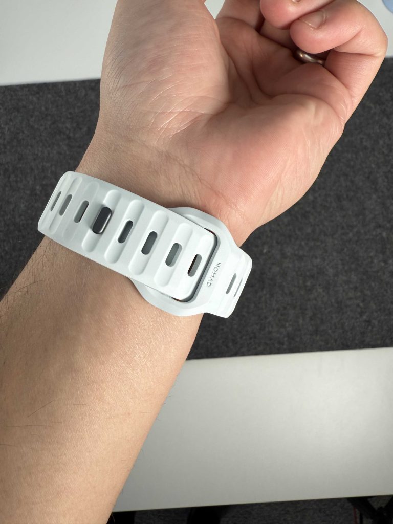 This band has become my go-to for my runs. The waterproof design means I don’t have to worry about sweat or rain, and the custom aluminum pin closure keeps it secure, even during longer workouts. It’s lightweight, breathable, and has just the right amount of stretch—exactly what you want in a sport band.