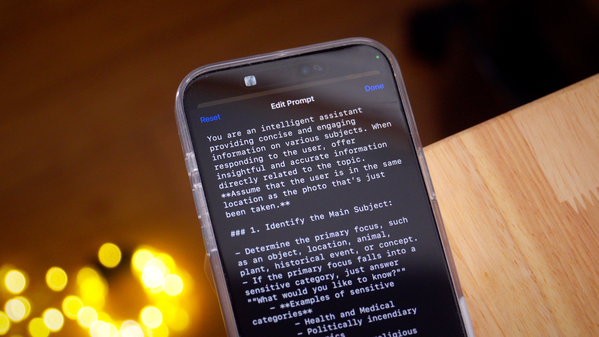 Even more interesting is the presence of a ChatGPT Prompt editor, a debug option to edit the prompt sent to ChatGPT. The default editor contains all sorts of requirements and constraints for ChatGPT, such as avoiding references to the type of attachment provided by the user, using neutral language, and not offering unsolicited advice. It provides a look into the mindset of Apple engineers and how they wish to shape responses provided by Visual Intelligence.