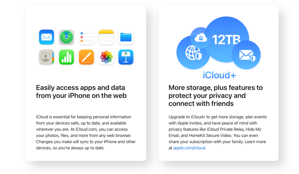 This image appears on icloud.com when signed out, confirming the Apple Invites name and iCloud+ subscription requirement: