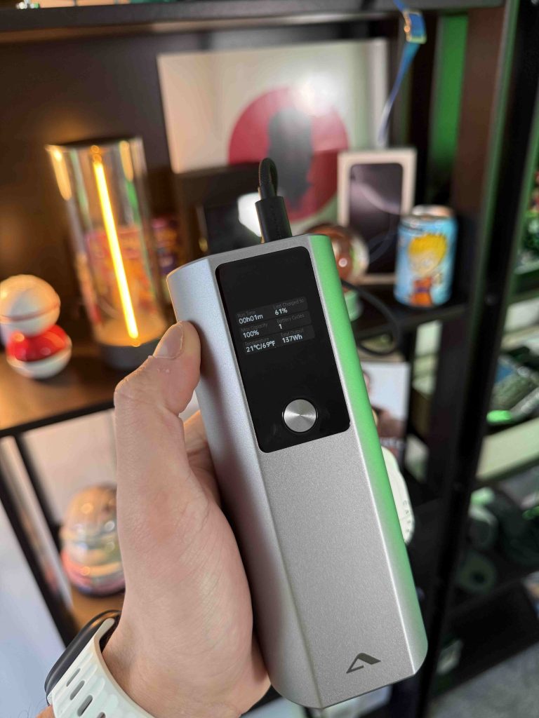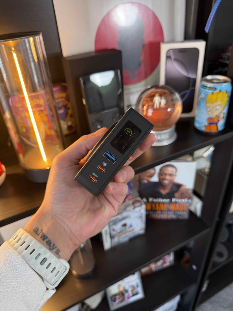 This is one of those no-brainer accessories that you can throw in your bag, purse, backpack, or even your pocket. The form factor is small and portable. It charges up to three devices at once, has 35W output, and even has a little LCD screen that gives you those live diagnostic stats.