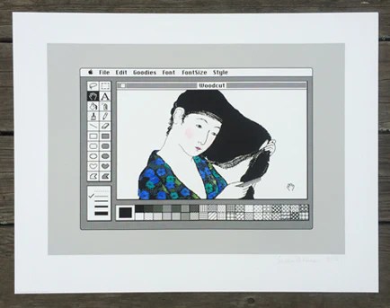 I have a MacBook Pro, and my external keyboard is Apple’s Magic Keyboard, so I’m safe from temptation. I must say if I were choosing from her site, it would have to be this absolutely beautiful hand-painted woodcut of the MacPaint demo graphic.
