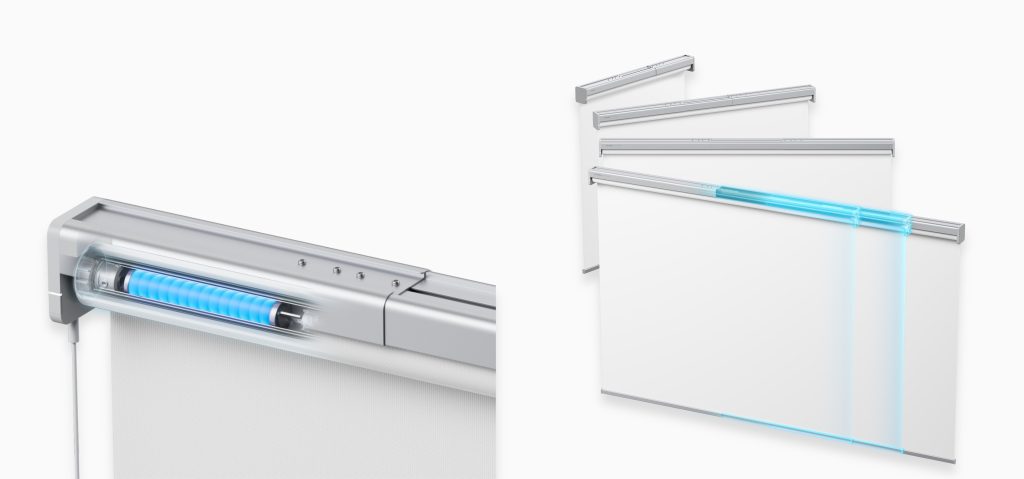 The shades incorporate an internal battery that can run for eight months on a single charge, for completely wireless operation. Or you can attach a solar panel to run the shades indefinitely, with no manual charging interventions.