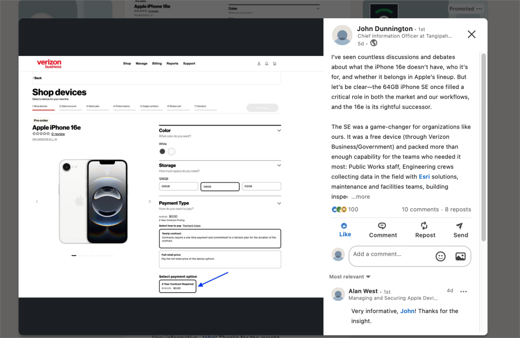 One thing to mention as well is that for business customers buying through their cellular carrier, this iPhone will be either free or almost free with a contract. For enterprises, the price is right with the iPhone 16e, and I wouldn’t hesitate to deploy 10,000 of them.