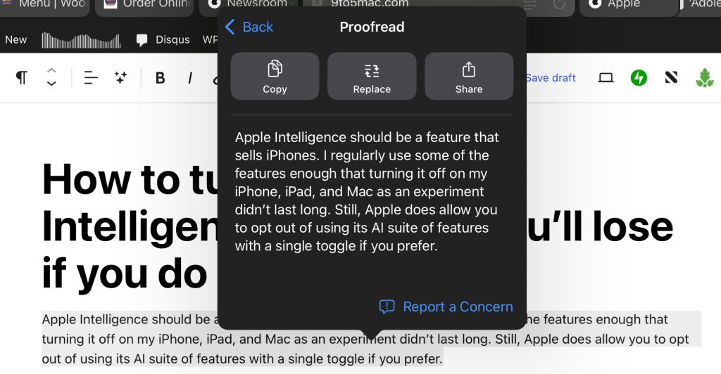 But trusting it to proofread and fix text without knowing what changed? That’s a level of trust that I haven’t established yet with Apple Intelligence.