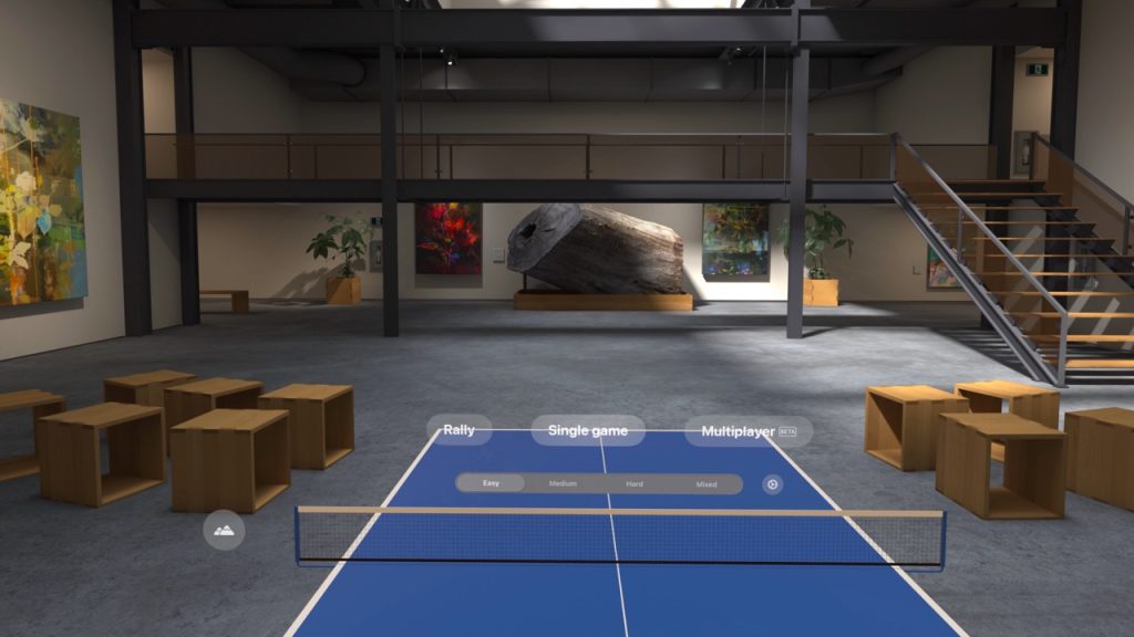 Ping Pong Club is a realistic table tennis simulator for Apple Vision Pro. It supports spatial audio and offers dynamic lighting for an authentic gameplay experience. Despite relying solely on hand tracking, it actually works quite well.