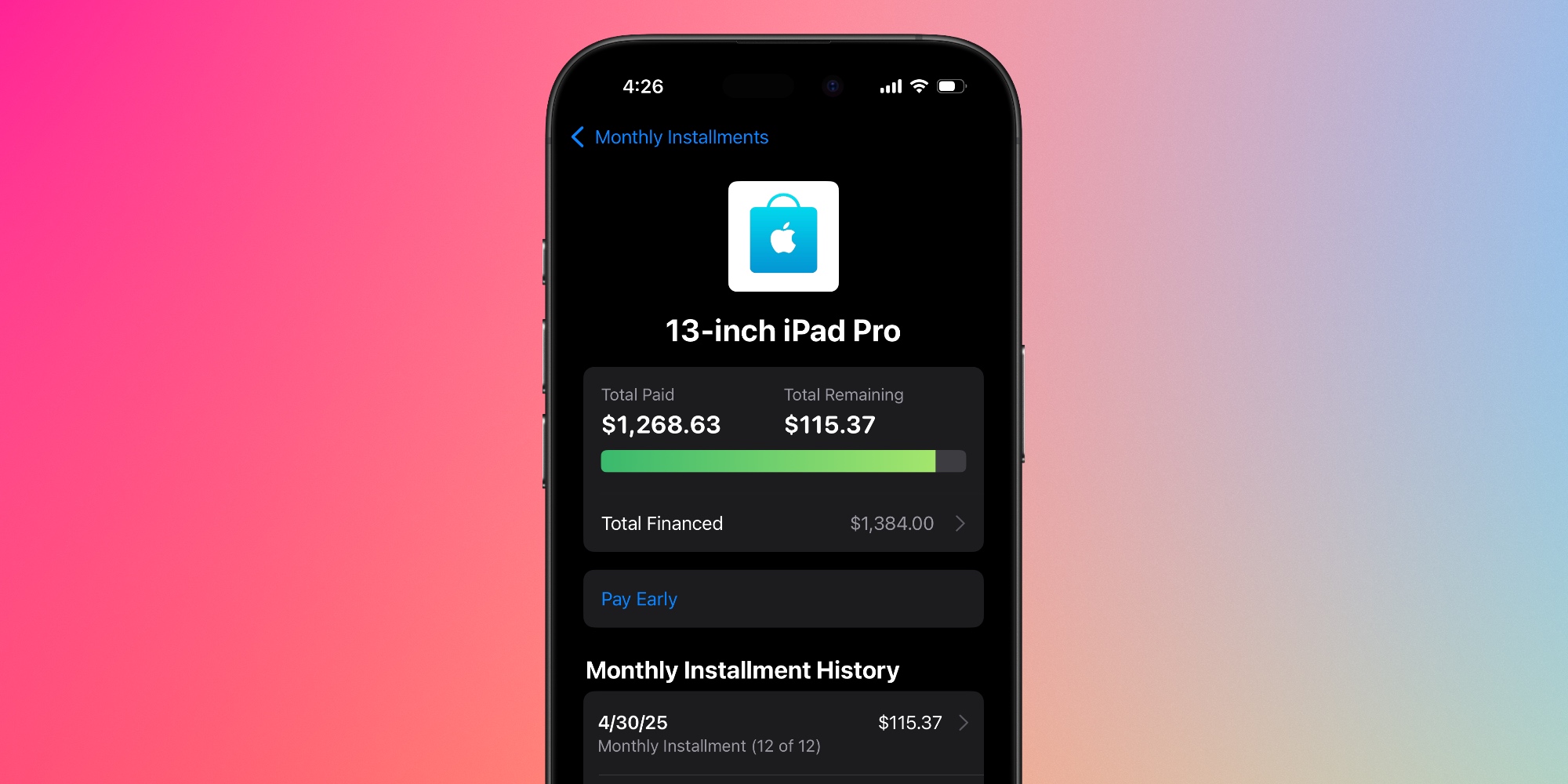 Apple Card automatically offers the chance to pay for new Apple products over time, completely interest free.