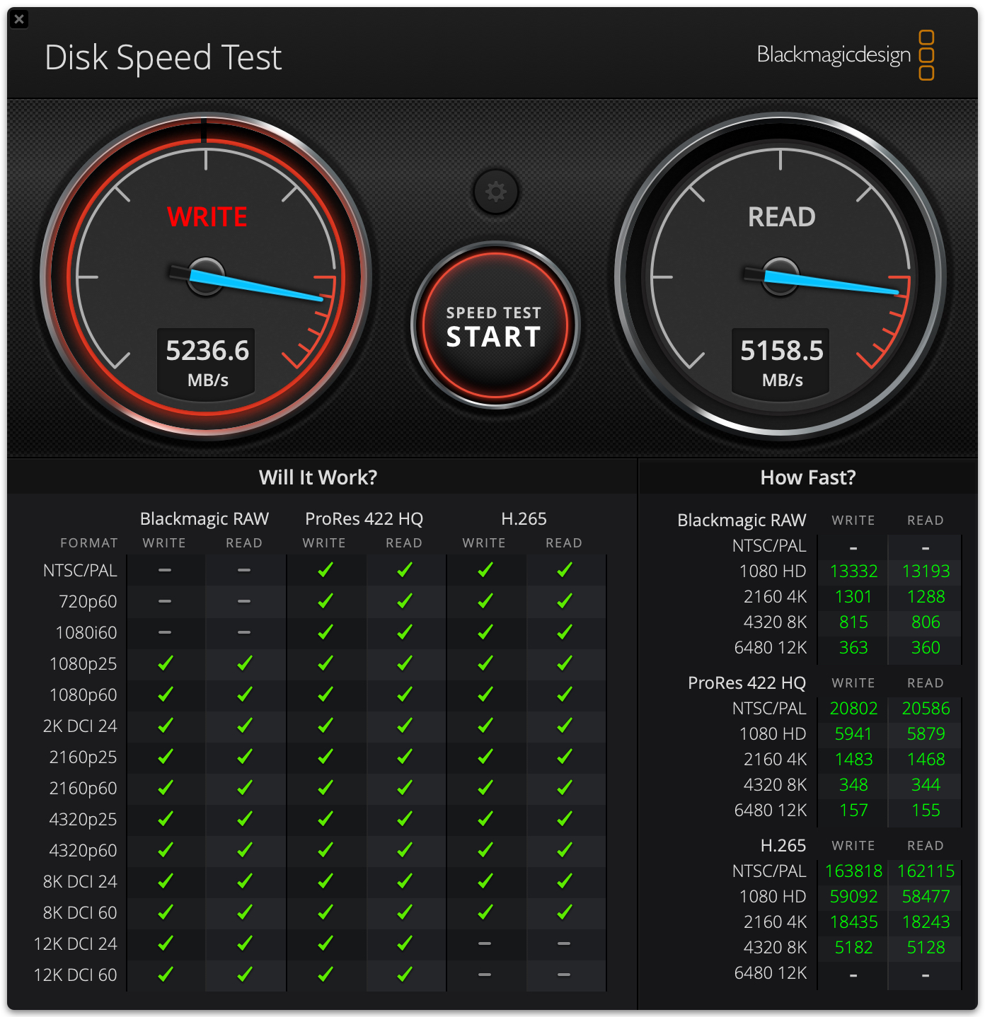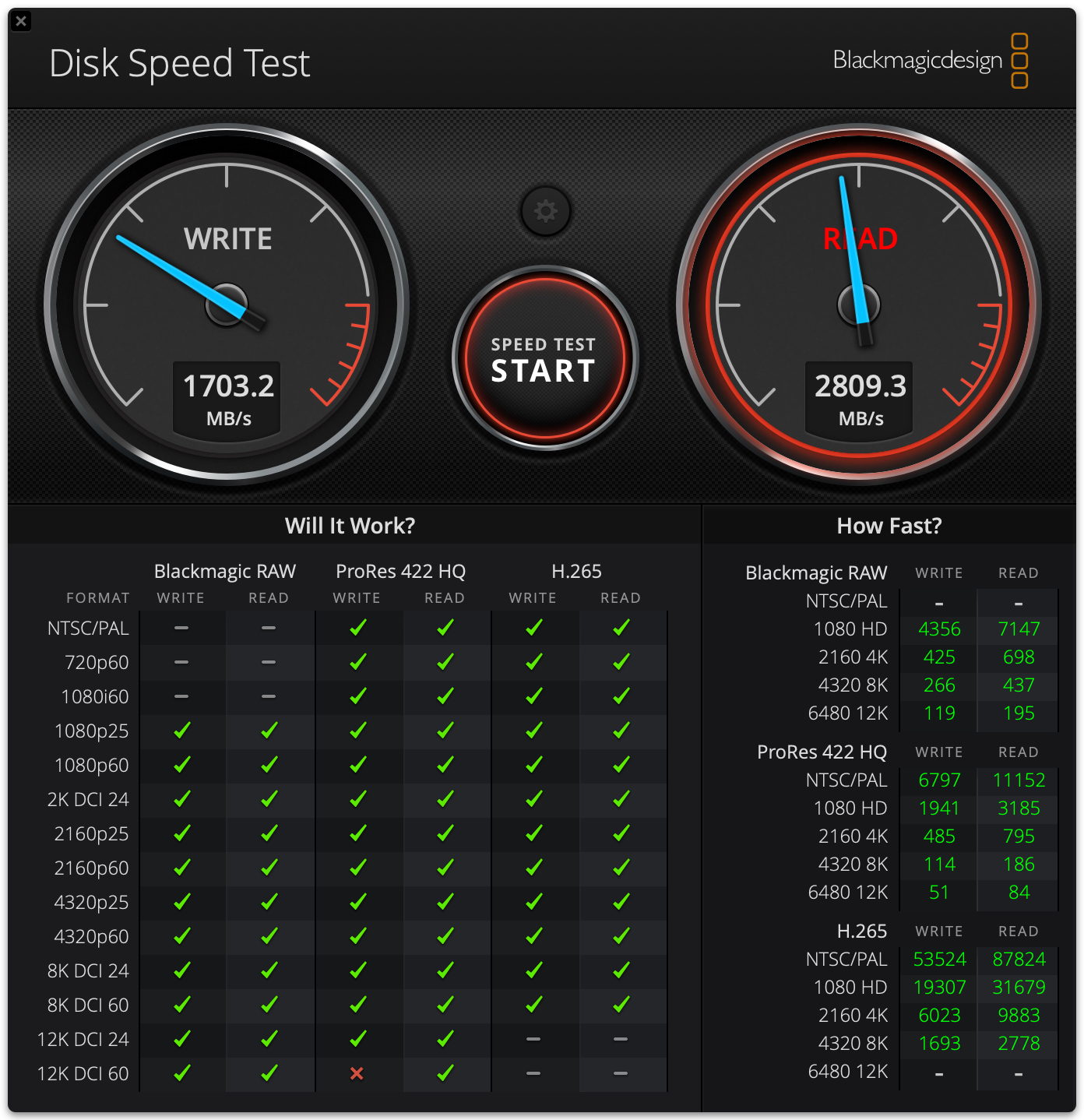 As you can see from the Blackmagic Disk Speed Test below, the results for the OWC Envoy Ultra did not disappoint. If you have high speed storage needs for video applications, then this drive will be more than enough to handle your needs for basically any quality of video that you can throw at it.