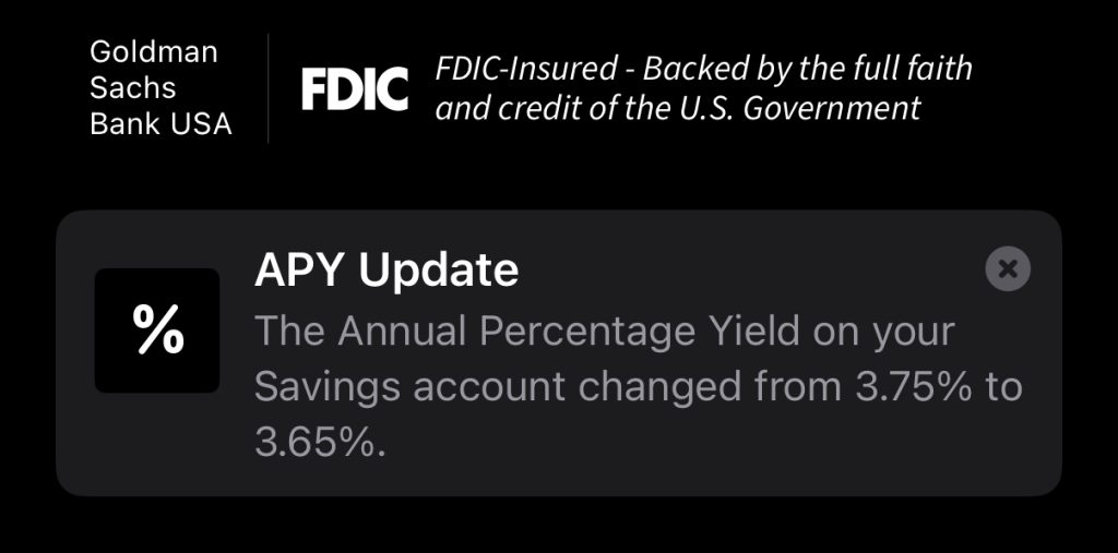 Apple Card Savings Account has taken another hit to its interest rate as of today. Apple and Goldman Sachs have dropped the annual percentage yield from 3.75% to 3.65%, marking the second rate cut of 2025.
