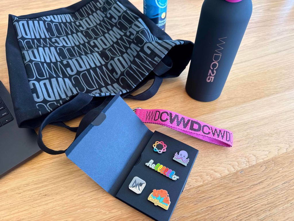 - I’ve made it inside Apple Park! Inside the goodie bag this year are some limited-edition enamel pins, a slick water bottle, and a keychain thingy.