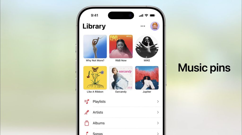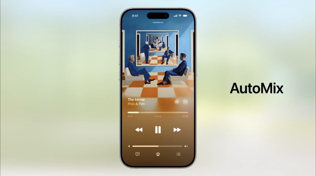 - New features for the Music app: lyrics translation, pronunciation guides, and a new AutoMix feature for seamlessly transitioning between songs. You can also now pin artists and playlists to the top of the music app.
