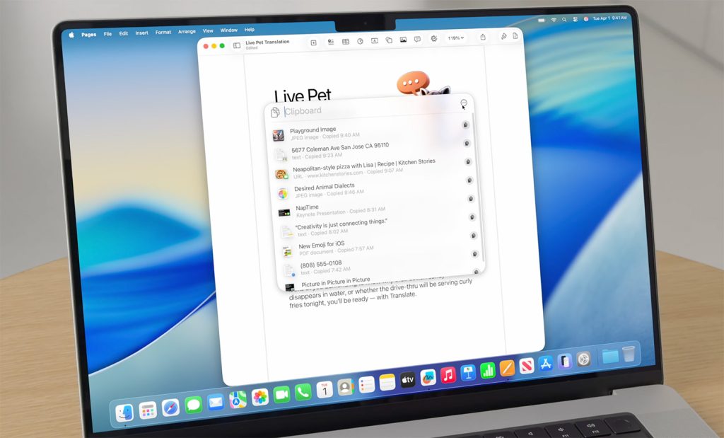 Another new addition is clipboard history, available directly within Spotlight. Users can now search and browse previously copied items. That includes text, links, and images, with a visual preview column on the left side of the Spotlight window, and an easy way to check from which app or context that specific content was copied.