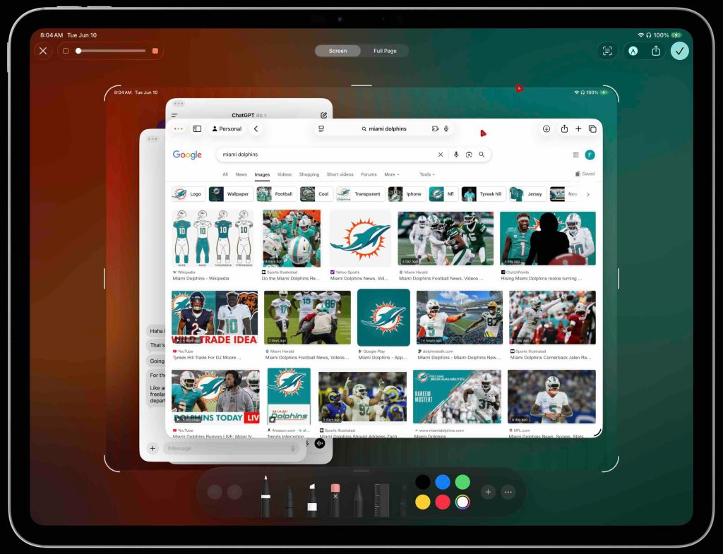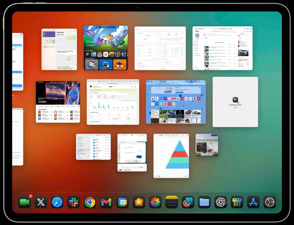 - Persistent floating apps – Keep tools like Music or Messages open while you work in another app (up to 12 apps can be opened at once in one view)