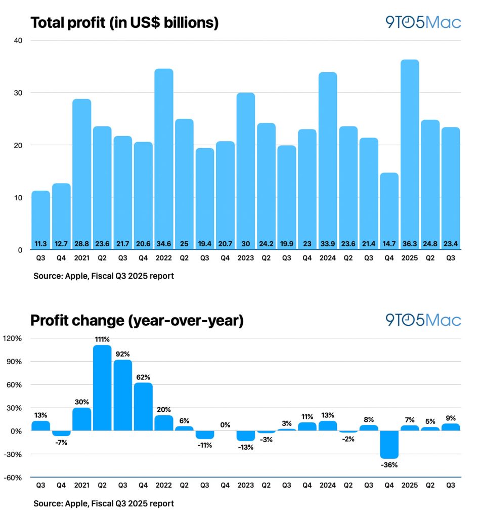 Apple reported $1.57 earnings per share for Q3 2025, and $23.42 billion in profit.