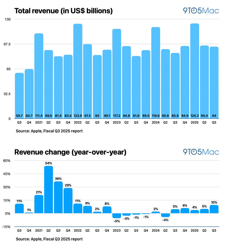Apple just released its earnings report for fiscal Q3 2025 ended June 28. The company generated $94.04 billion in revenue, up 10% from the same quarter last year, and above the expected revenue of $89.22 billion. Here’s the full breakdown.