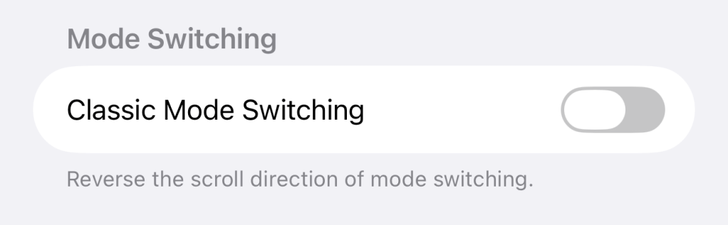 Camera now has a toggle to revert the swipe direction for switching shooting modes.