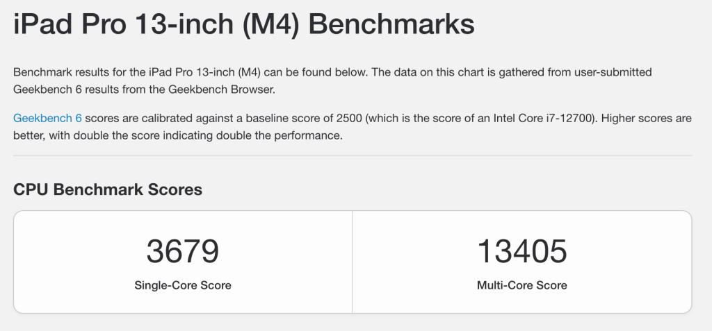 Let’s start with the “on paper” comparison. The M4 iPad Pro and the M4 MacBook Pro use the same chip, so the raw performance of each is basically identical.