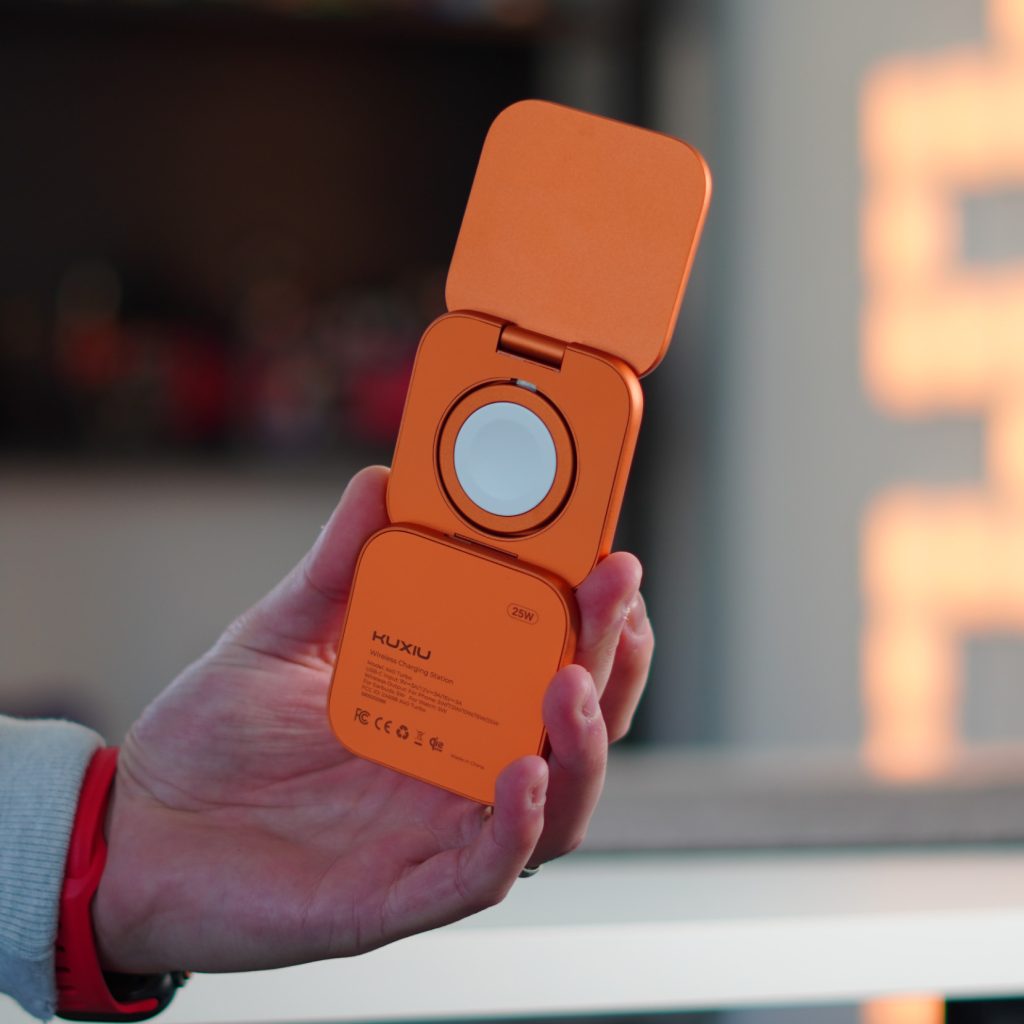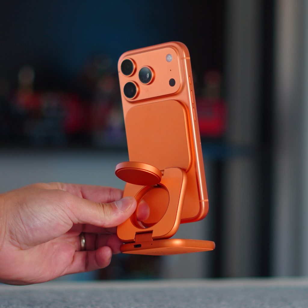 I tested this new orange edition with the iPhone 17 Pro over several days, and the results were identical to my earlier numbers with the 16 Pro. Charging from 10 % to 80 % still took under 50 minutes, and it stayed cool. The magnets align perfectly, and that 25 W speed feels like the first time wireless charging finally makes sense for daily use. The charger is also insanely thin and compact. You can fold it down into a puck, or you can unfold it into a stand mode. You can also completely unfold it and lay it flat on a table. It’s amazing how versatile and well-built this is, especially the hinges!