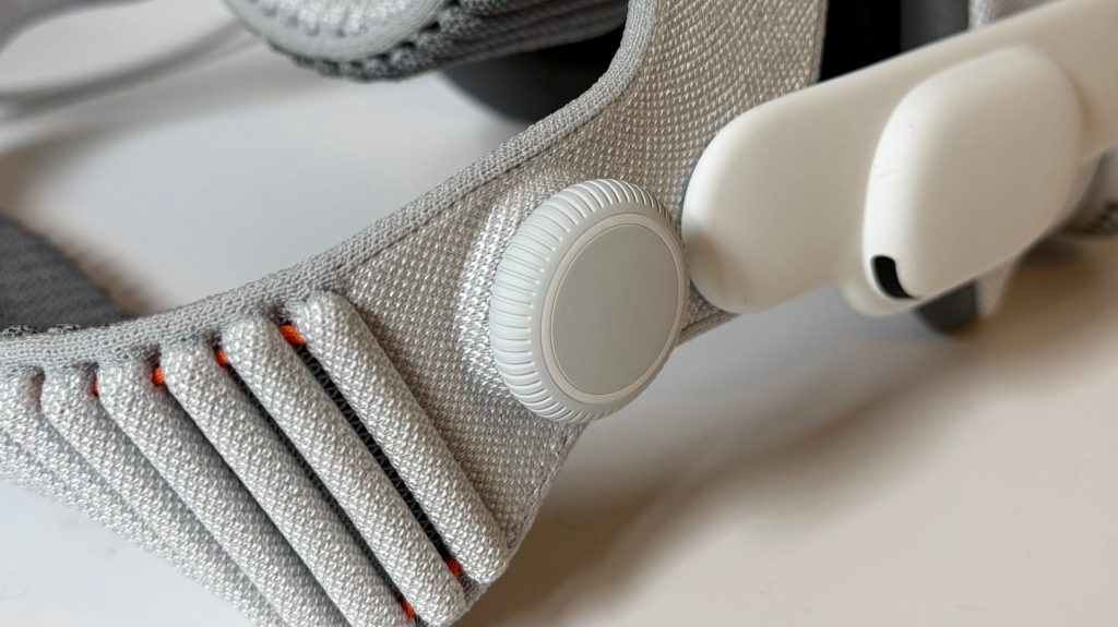 What’s particularly impressive about the Dual Knit Band is how easy it is to adjust. There’s a single dial on the right-hand side that controls the fit of the top and back bands. When pushed in, it tightens or loosens the lower strap, and when pulled out, it does the same for the top strap. It’s far better than having to deal with awkward velcro straps.