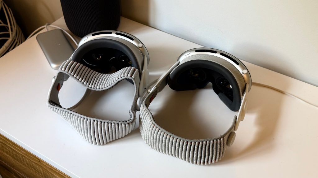 The most important change to the new Vision Pro is the Dual Knit Band. The original Vision Pro shipped with two bands in the box: the fashionable, engineering marvel Solo Knit Band and the industrialized, practical Dual Loop Band. It was clear from day one that the Solo Knit Band was the band Apple wanted everyone to use, but its single-strap design simply wasn’t practical for many Vision Pro users. The Dual Loop band was less impressive from an engineering perspective (basically just two velcro straps attached to each other).