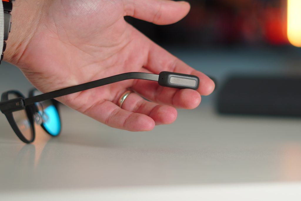 My biggest worry about a new version was that they would change the design too much, because the design of the G1 was my favorite part. I was pleased to see that they mostly retained the design while also making them lighter, weighing in at just 36 grams; for comparison, the Meta Ray-Bans are about 50 grams. They slightly flattened the top portion of the lens frame, which I did not mind. The most important change was the input method on the glasses themselves. On each temple tip, they replace the current unsatisfying touch nub with a more sophisticated yet easy-to-use touch pad control system. It’s very reminiscent of the camera control button on the modern iPhones. You can swipe, slide, scroll, tap, double-tap, and long-press to interact with the UI and features in different ways. It also hides behind your ear, so it is not visible to most people.