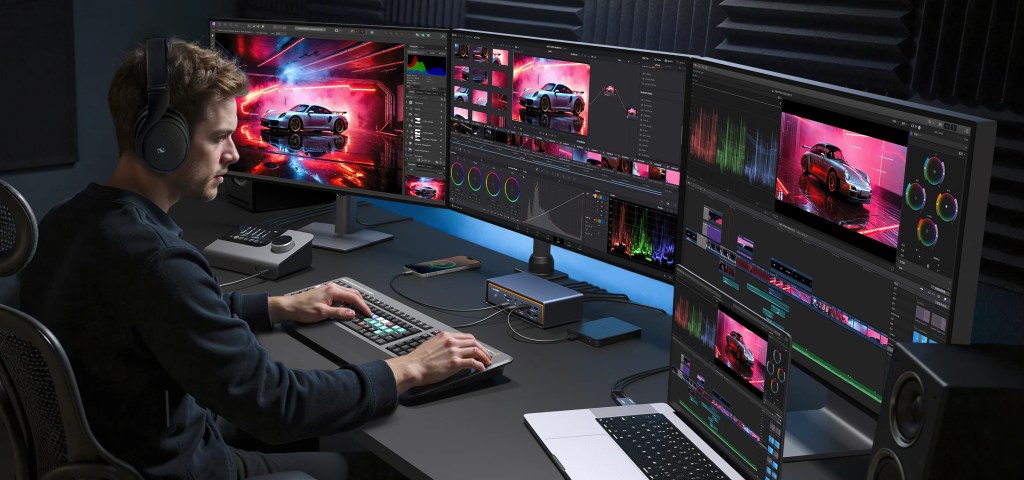 This is the first MacBook dock for Thunderbolt 5 that brings real triple-display support out of the box. With its innovative dual-chip architecture and impressive 120 Gbps bandwidth, people can finally expand their workflow across multiple external monitors. You can be editing on one, previewing on another, and managing tools or timelines on a third. Even on something like the $499 Mac mini, you can get triple 4K displays running with no issues.