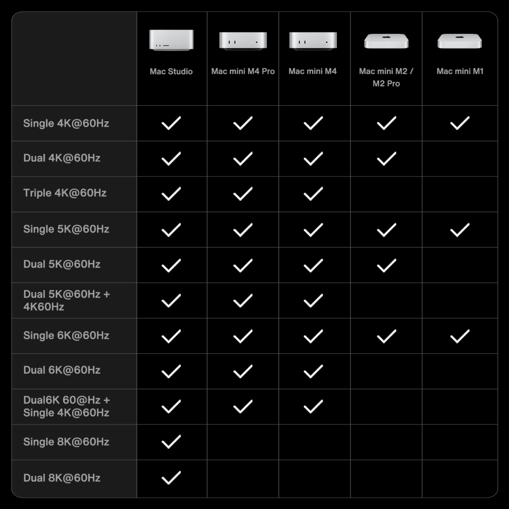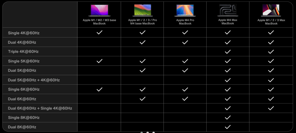 Unlike many universal docks, the FusionDock Max 2 is designed specifically for Apple Silicon MacBooks. It’s not compatible with PCs or Intel-based Macs, and that’s intentional — by focusing on Apple’s architecture, iVANKY optimized performance, compatibility, and power delivery for M-series chips. The result is a plug-and-play experience that integrates seamlessly with macOS, supporting native triple-display output without additional drivers or workarounds. Here are a few graphics that showcase the compatibility and what each generation of Mac can do alongside the new Max 2 dock.