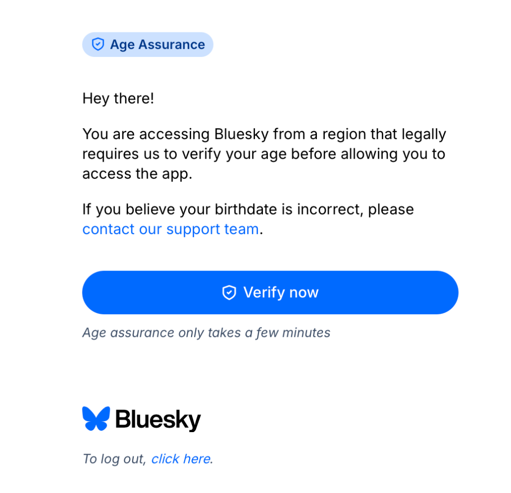 On Monday, Bluesky stopped blocking access from where I live and instead started offering age verification that complies with state law. Here’s how that looks: