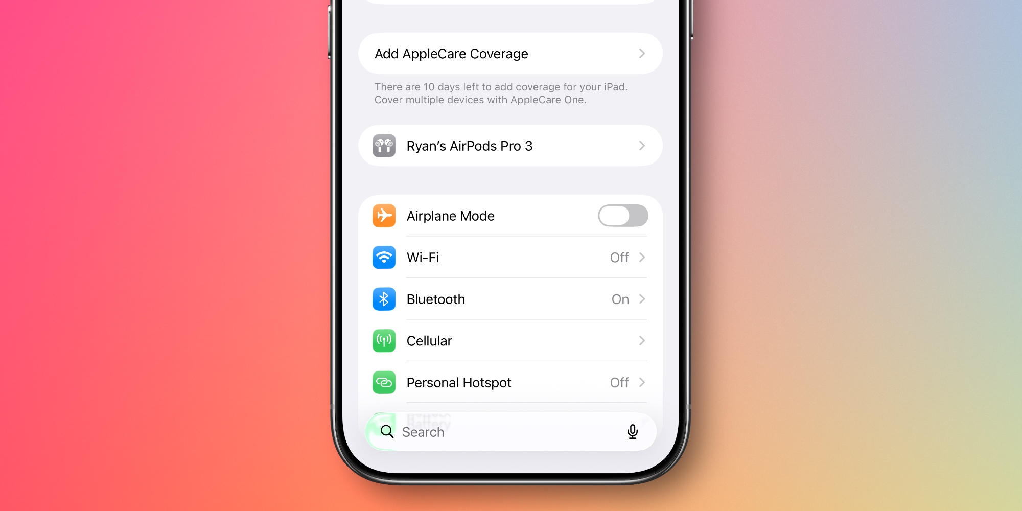 When you return your AirPods to their charging case and close its lid, the AirPods panel disappears from the Settings app’s main page within a few seconds. However, I’ve discovered a deviation in this behavior that appears to occur only when an AirPods firmware update is in progress. On two separate occasions, the AirPods panel persisted in my Settings app even after I returned my AirPods Pro 3 to their case and closed the lid. The panel stuck around for a few minutes (as opposed to seconds) until the firmware installation completed. Both instances occurred right after Apple had released new AirPods firmware, and I verified the change in build numbers immediately after.