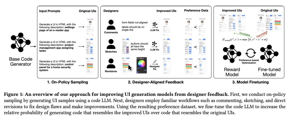In it, the researchers explain that existing Reinforcement Learning from Human Feedback (RLHF) methods aren’t the best methods to train LLMs to reliably generate well-designed UIs, since they “are not well-aligned with designers’ workflows and ignore the rich rationale used to critique and improve UI designs.”