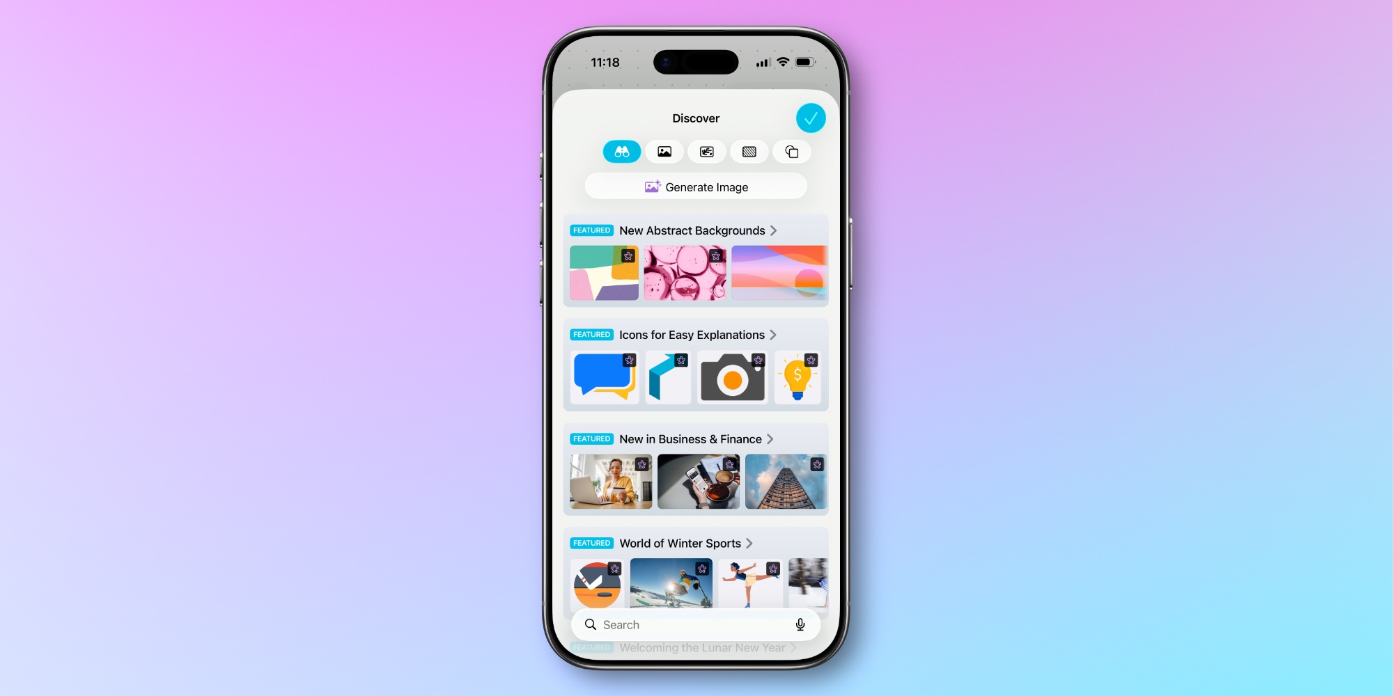 Freeform now includes the Content Hub seen in other iWork apps, providing access to Apple-curated photos, graphics, and backgrounds. The app also lets you generate new AI images using OpenAI’s image models.
