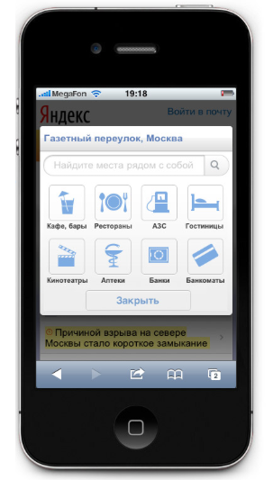Yandex’s geosearch API works like this: When users are looking for details on Apple’s Maps service, Yandex’s geosearch API powers that that search, providing information about restaurants, shops, streets, and so on. If a user wants more detail on a place, there is a Yandex button at the bottom of the listing; clicking through takes the user to the Yandex.Map app — Yandex’s standalone native mapping app. If a user doesn’t have that app installed, they are redirected to the App Store to download it. Yandex’s mapping API works for all users in Russia, as well as those who use Apple Maps elsewhere to source mapping information about Russia.