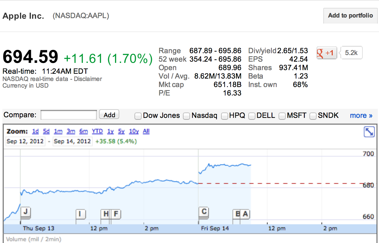 The world’s most valuable company is only strengthening its title after showing off a new smartphone, line of iPods, and a variety of accessories earlier this week in San Francisco. AAPL shares previously hit an all-time high yesterday, when the stock pushed up 2 percent, or $13.32, to $683.11, in afternoon trading. The previous record of $680.44 occurred Sept. 7.
