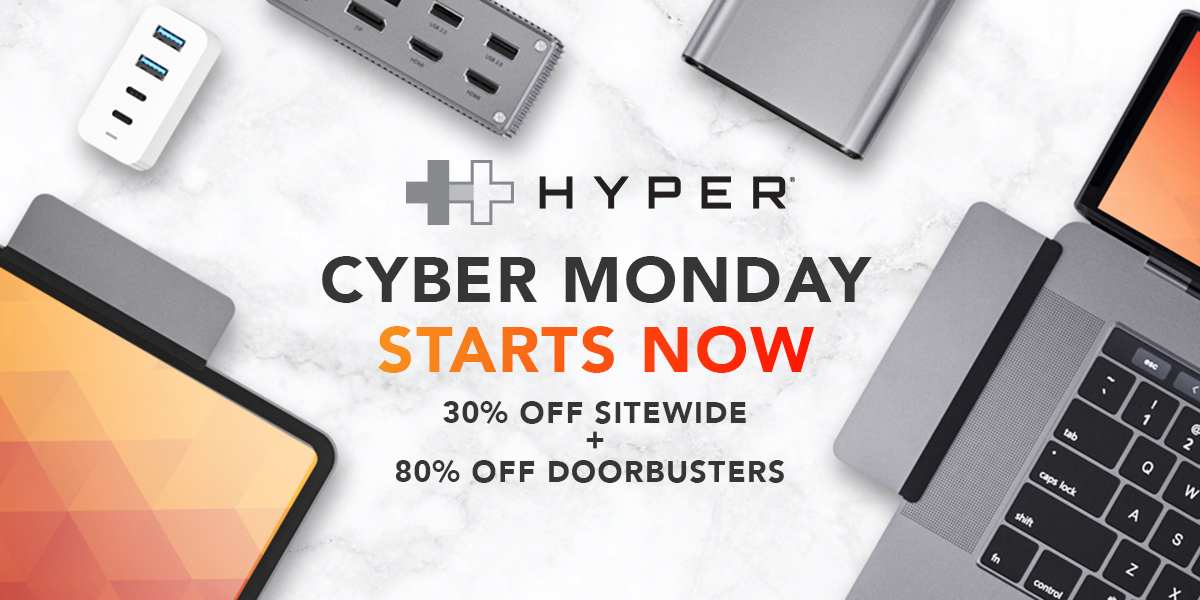 Hyper has started their biggest Cyber Monday sale to date, with 30% off every item in the store and even bigger discounts available on many items with up to 80% savings. Shop now for incredible savings on gear for iPhone, iPad and Mac with free shipping in the United States. The sale runs all the way through Black Friday, ending at 11:59 PM PT on Cyber Monday.