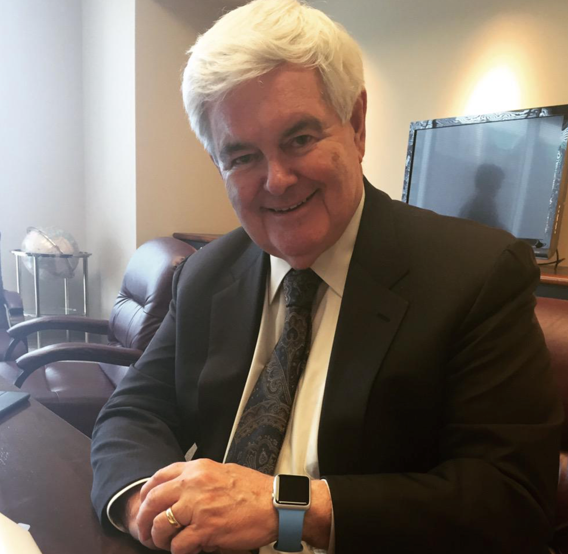 Below, Newt Gingrich can be seen wearing the Watch in preparation for reviewing the device for Mashable: