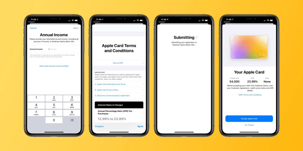 Details like your address, phone number, and name are pre-filled based on my Apple ID information. You do have to enter my annual income, though. Once you enter all of your details, you’ll be presented with the Terms and Conditions. Once you agree, your application is submitted to Goldman Sachs for approval.