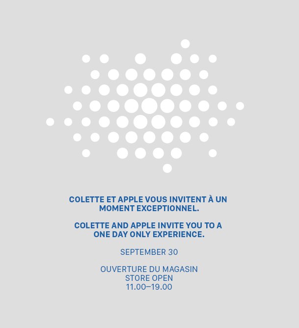 On its website, French fashions retailer Colette is teasing a ‘one day only experience’, taking place at its stores on September 30th. The event runs from store open to 7 pm local time (via MacGeneration). Other details are unknown.