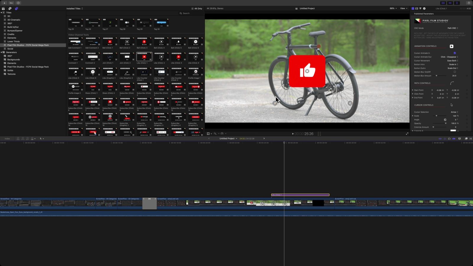 If you’re looking to step up your social media presence in your videos, then look no further than the FCP Social Mega Pack from Pixel Film Studios. This bundle includes over 600 social media tools spanning 18 different categories across Final Cut Pro titles, generators, and transitions.