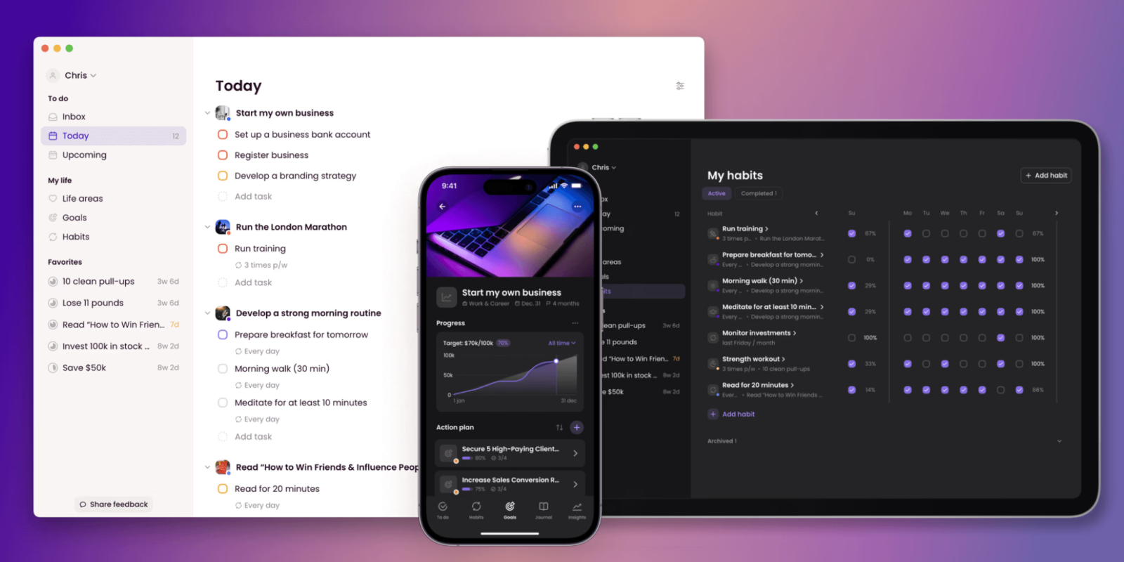 Griply is an all-in-one app that brings together your goals, habits, and tasks – making them easier to accomplish, and keep track of. It helps people turn big goals into daily actions.